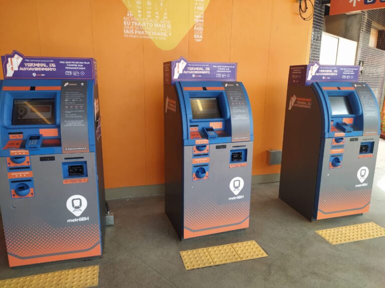 A partir de 6 de maio, o Metrô de BH substituirá as bilheterias por terminais de autoatendimento em todas as 19 estações. Os novos equipamentos permitem a compra de até quatro passagens unitárias por transação, utilizando PIX, cartões de crédito, débito, cédulas ou moedas. Além disso, é possível recarregar qualquer valor no aplicativo Bipay diretamente nas máquinas.