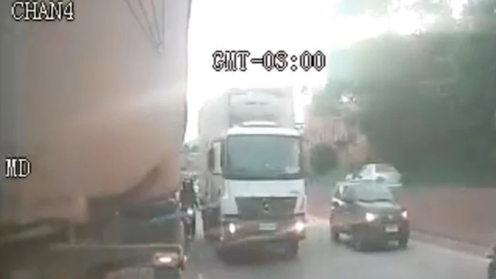 No vídeo, a motocicleta aparece transitando por um corredor entre a carreta e um caminhão. Em determinado momento, o motociclista parece perder o controle do veículo, colidindo contra a lateral do caminhão antes de cair sob a carreta que trafegava na faixa da direita.