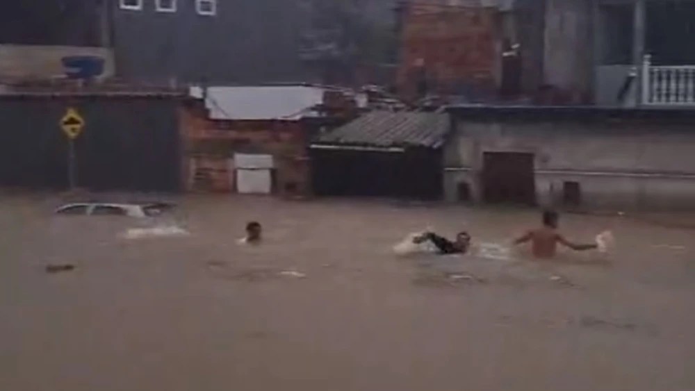 Um dos vídeos mais impressionantes foi registrado no bairro Parque São João, próximo ao Núcleo Curumim. Nele, pelo menos quatro jovens são vistos nadando no alagamento, com a água alcançando o nível do pescoço de um deles. Um morador, desesperado, busca refúgio no teto de um carro.