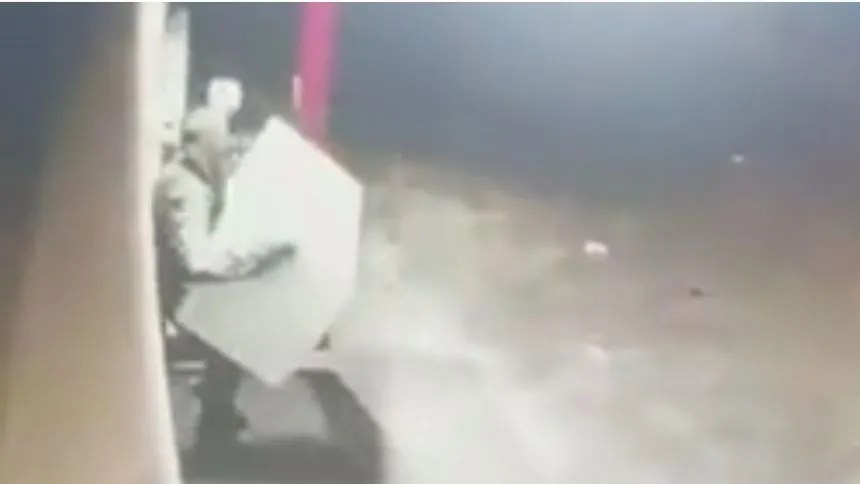 Conforme a Polícia Militar, uma equipe foi até o local para rastreamento dos objetos furtados. Câmeras de segurança flagraram o suspeito entrando no banco e saindo com o frigobar. Em um momento, ele se atrapalhou e deixou o objeto cair no chão e pegou logo em seguida.