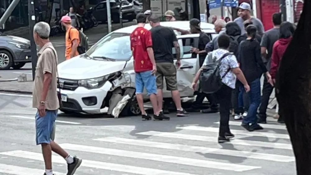 O Serviço de Atendimento Móvel de Urgência (SAMU) foi acionado e presta socorro no local. Com o impacto, o carro parou no canteiro central da via, com a parte dianteira voltada para o sentido centro e a traseira em direção à Praça Raul Soares.